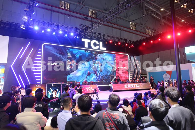 图片说明:2021年3月23日,上海,LPL英雄联盟电竞比赛亮相家电展TCL电子竞技舞台。