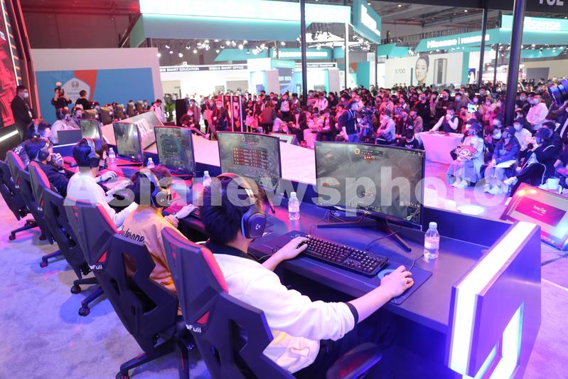 图片说明:2021年3月23日,上海,LPL英雄联盟电竞比赛亮相家电展TCL电子竞技舞台。