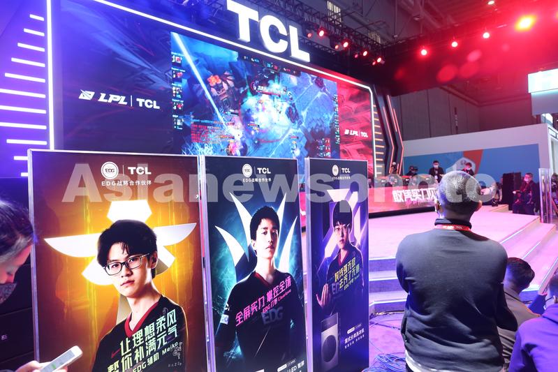 图片说明:2021年3月23日,上海,LPL英雄联盟电竞比赛亮相家电展TCL电子竞技舞台。