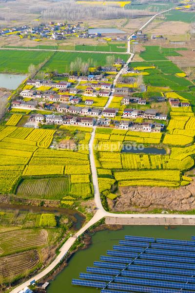图片说明:2021年3月25日,安徽省合肥市肥东县梁园镇陷陂湖水库周边油菜花盛开,与水库上的渔光互补光伏电站互相映衬景色优美。