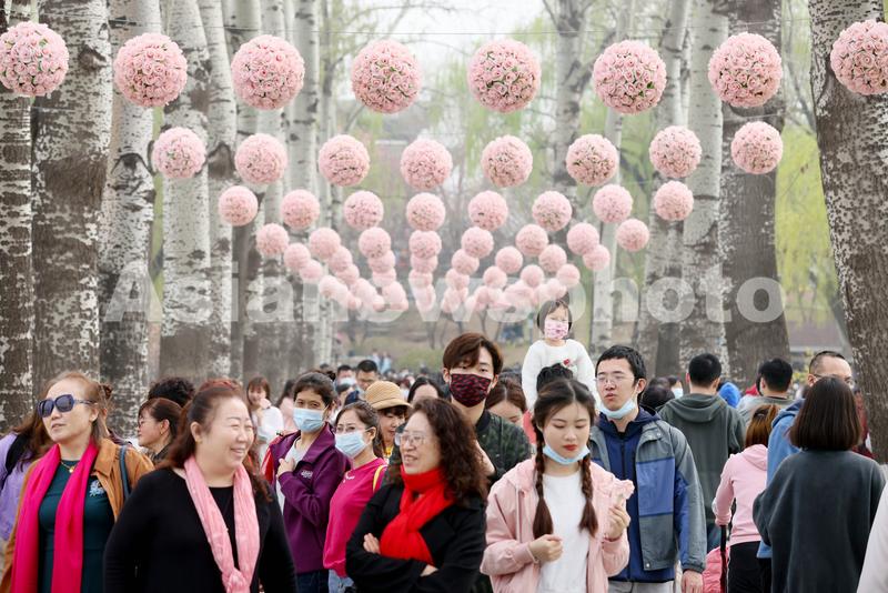 2021年3月27日,北京玉渊潭公园内,盛开的樱花吸引市民游人踏青赏花,公园内人流如织。