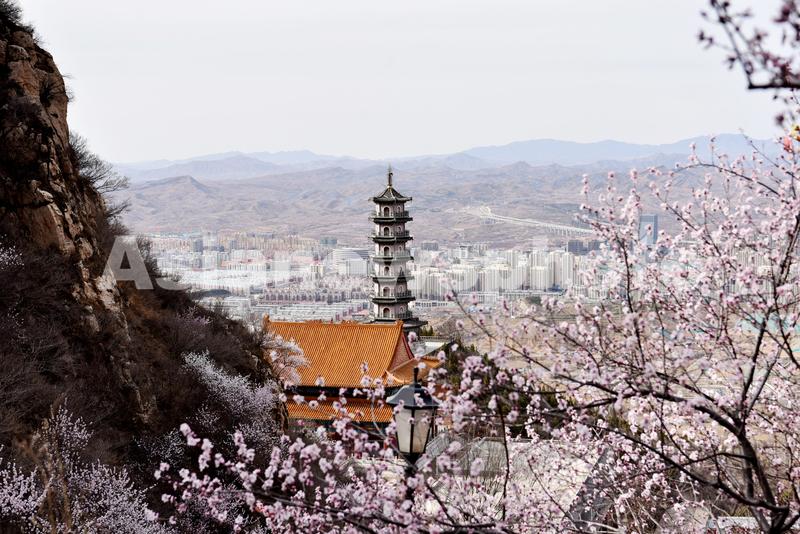 春暖花开,位于河北省张家口市下花园区的鸡鸣山被漫山遍野盛开的山杏花、山桃花等妆点成一座花山。
