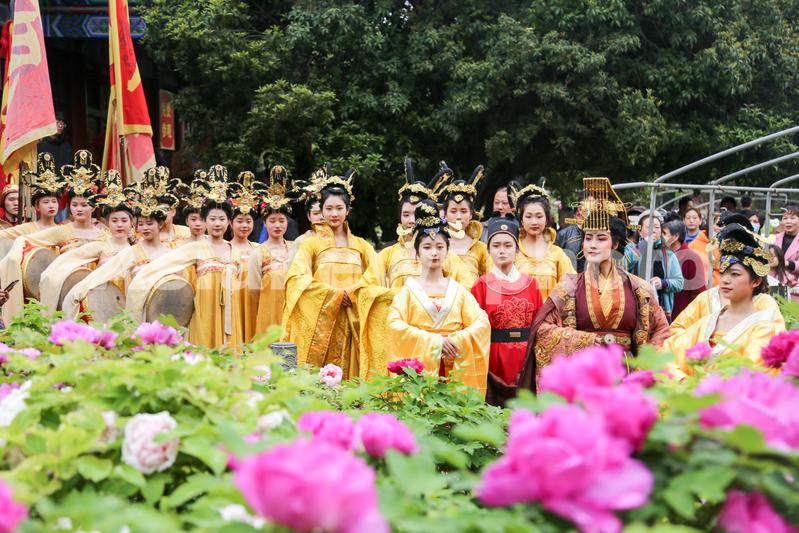 2021年4月5日,洛阳王城公园各色牡丹连片盛开,“女皇武则天”携“文武百官”前来游园赏花。