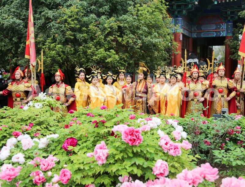 2021年4月5日,洛阳王城公园各色牡丹连片盛开,“女皇武则天”携“文武百官”前来游园赏花。