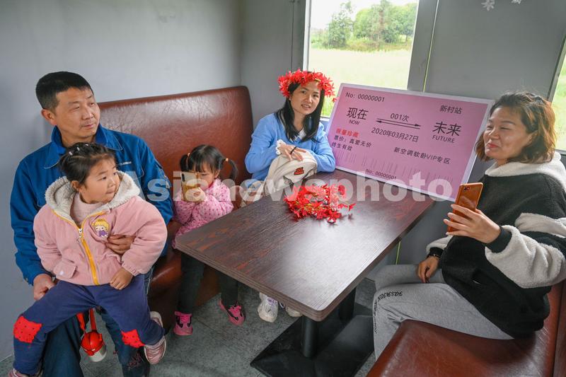 2021年4月11日,江西省上饶市婺源县太白镇新村“火车风情小镇”,游客体验绿皮火车。