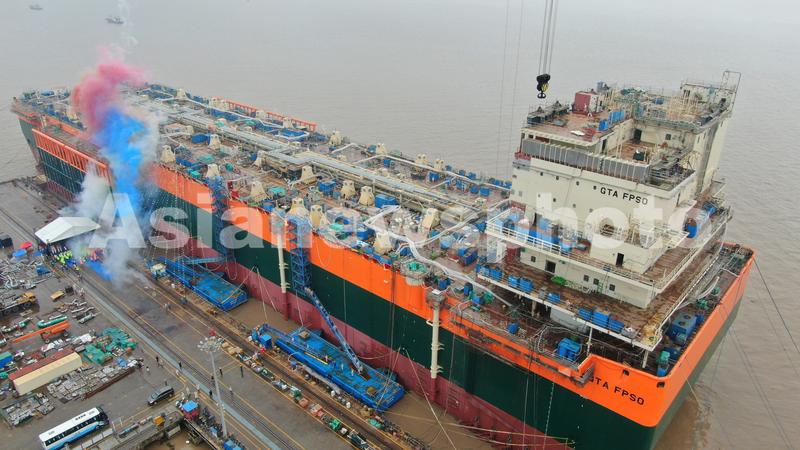 2021年4月12日,由江苏启东中远海运海工承建的浮式生产储卸油船N999 FPSO项目举行下水仪式。