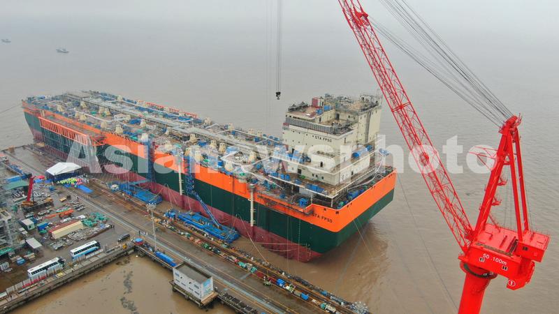 2021年4月12日,由江苏启东中远海运海工承建的浮式生产储卸油船N999 FPSO项目举行下水仪式。