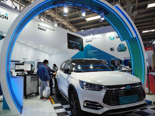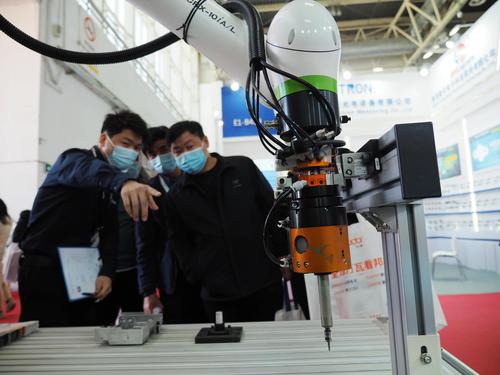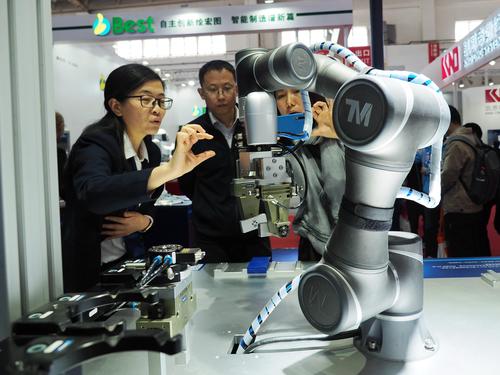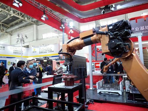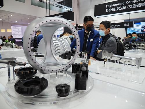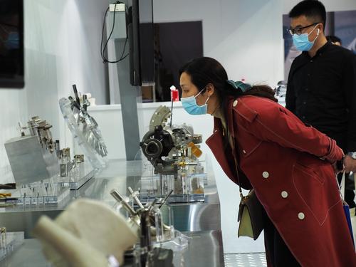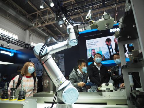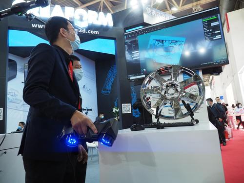 2021年4月13日,在北京中国国际展览中心(新馆)举办的第十七届中国国际机床展览会上,观众在参观展会。