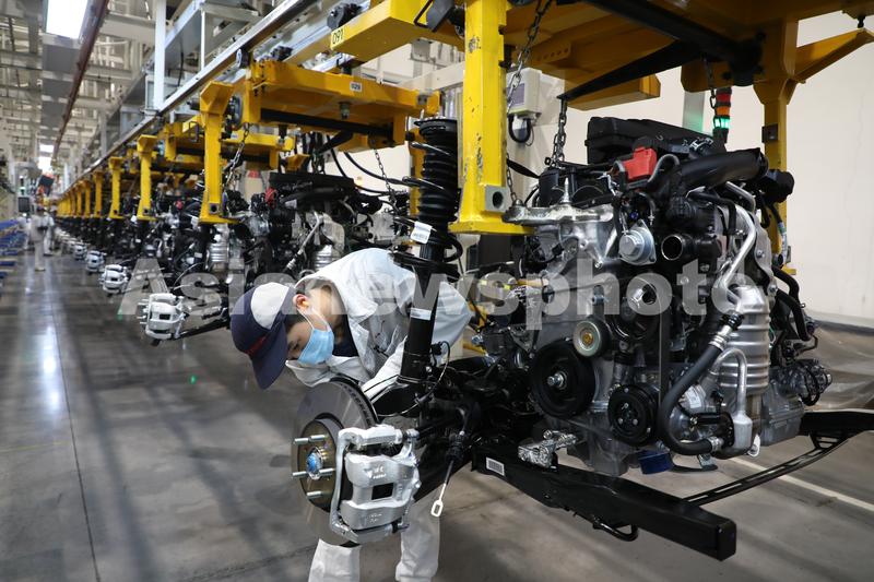 2021年4月15日,湖北武汉,东风本田汽车第三工厂总装生产线上,工人在忙碌。