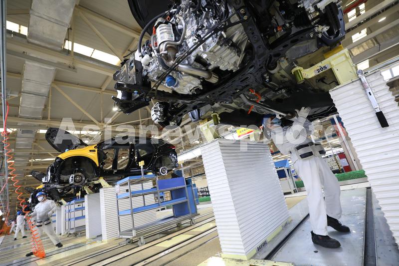 2021年4月15日,湖北武汉,东风本田汽车第三工厂总装生产线上,工人在忙碌。