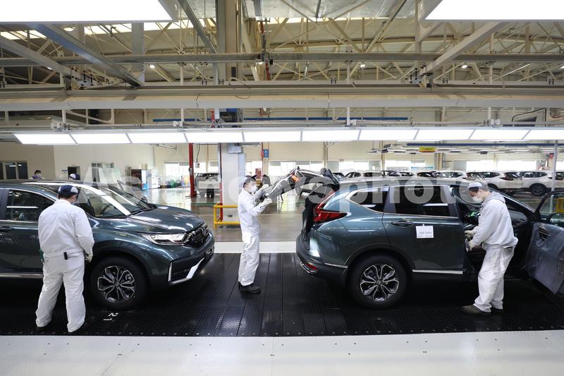 2021年4月15日,湖北武汉,东风本田汽车第三工厂总装生产线上,工人在忙碌。