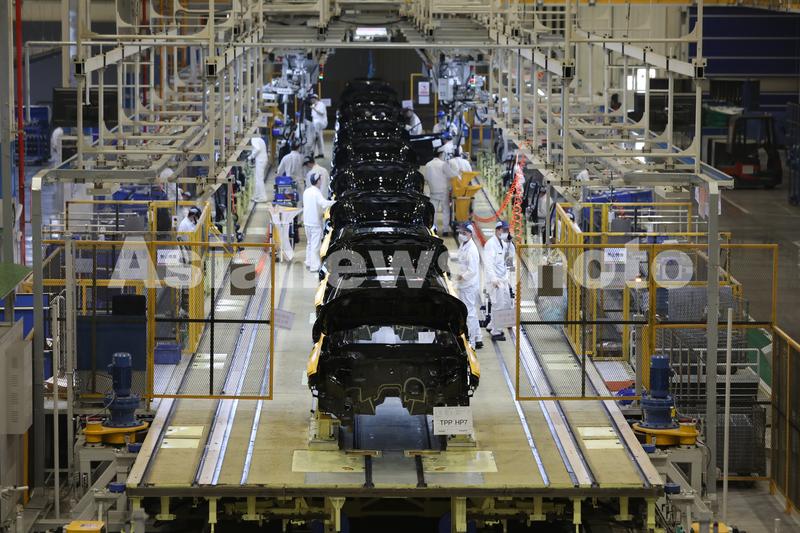 2021年4月15日,湖北武汉,东风本田汽车第三工厂总装生产线上,工人在忙碌。