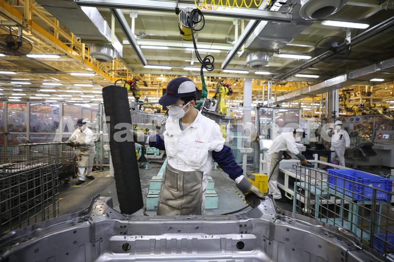 2021年4月15日,湖北武汉,东风本田汽车第三工厂总装生产线上,工人在忙碌。
