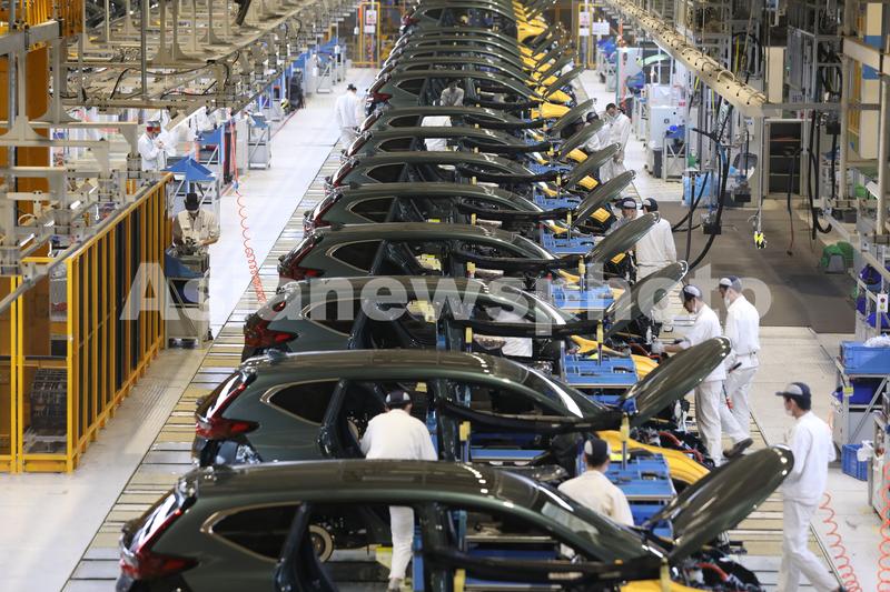 2021年4月15日,湖北武汉,东风本田汽车第三工厂总装生产线上,工人在忙碌。