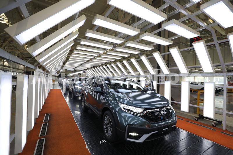 2021年4月15日,湖北武汉,东风本田汽车第三工厂总装生产线上,工人在忙碌。
