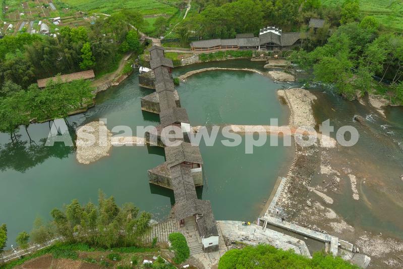 图片说明:2021年4月15日,航拍江西省上饶市婺源县清华镇彩虹桥,目前主体工程已完工。