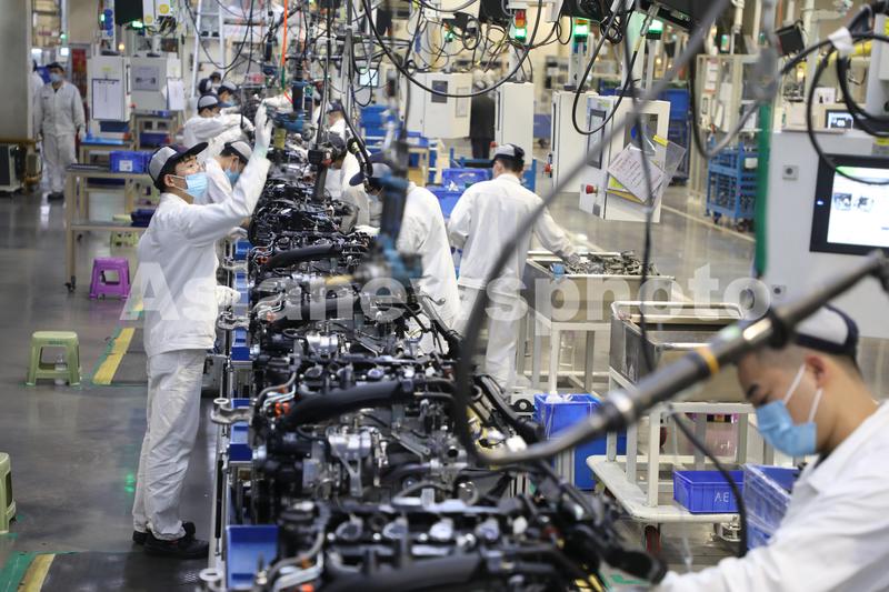 2021年4月15日,湖北武汉,东风本田汽车第三工厂总装生产线上,工人在忙碌。