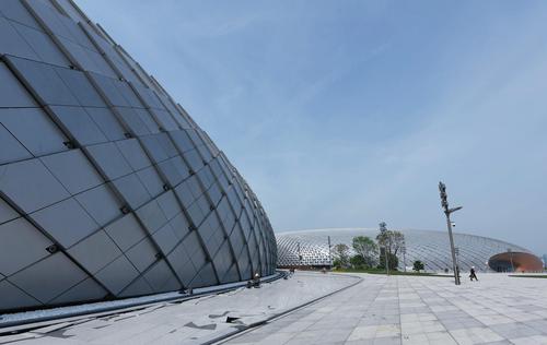 2021年4月18日,杭州奥体中心主游泳馆入口。
