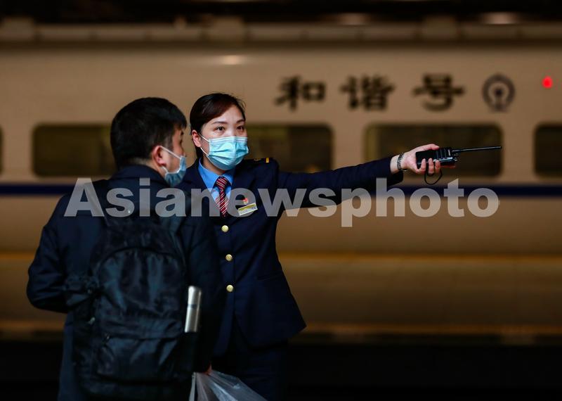 4月22日,汉口火车站工作人员引导旅客乘车。