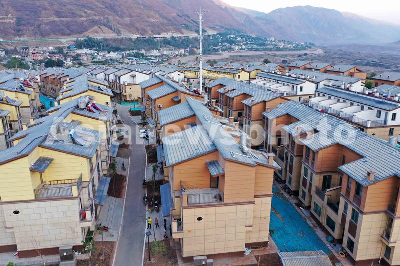 云南省昭通市巧家县为白鹤滩库区移民建设易地安置小区,小区内配套建设幼儿园、小学、社区卫生所、商场等公共设施,为易地搬迁的库区移民根据家庭人数分配面积不等的新楼房,搬迁房设计有客厅、厨房、卧室、卫生间等生活设施一应俱全。