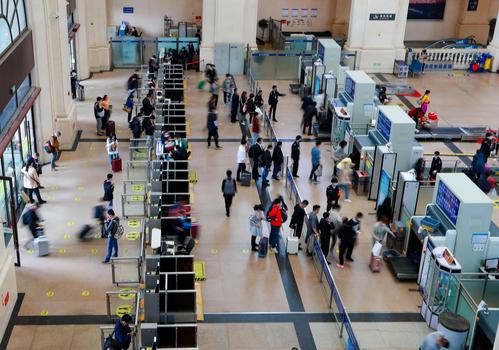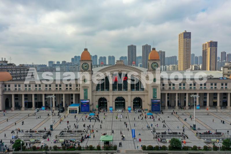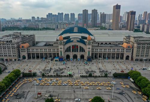 4月22日拍摄的汉口火车站(无人机拍摄)。