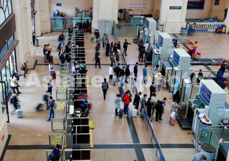 4月22日,旅客在汉口火车站有序进站乘车。