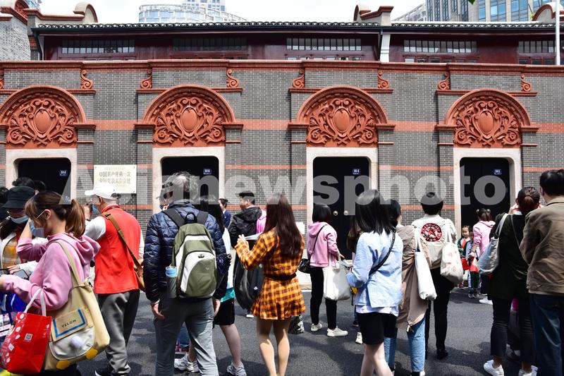 2021年4月28日,上海,市民游客在中共一大会址前打卡合影。近日,上海中共一大会址完成修缮,将于今年“七一”前对外开放。尽管中共一大纪念馆目前仍未开放,还需要进行内部细节的调整,但每天仍有不少市民游客前来打卡合影。