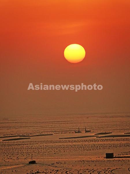 图片说明:2021年4月29日,辽宁省大连市长海县广鹿岛镇渔民们驾船迎着初升的朝阳前往养殖区进行作业。