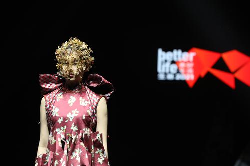 4月29日,模特展示北京服装学院毕业生设计的优秀时装作品。