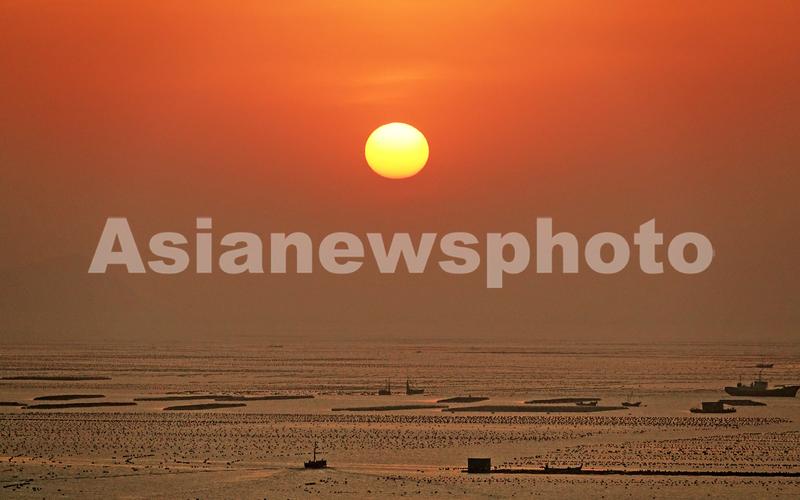 图片说明:2021年4月29日,辽宁省大连市长海县广鹿岛镇渔民们驾船迎着初升的朝阳前往养殖区进行作业。
