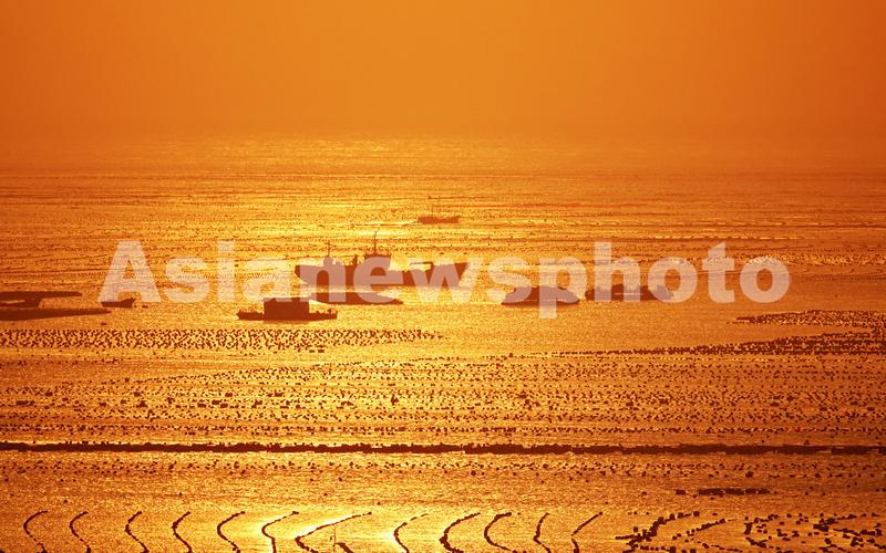 图片说明:2021年4月29日,辽宁省大连市长海县广鹿岛镇渔民们驾船迎着初升的朝阳前往养殖区进行作业。