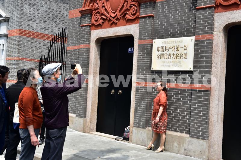 2021年4月28日,上海,市民游客在中共一大会址前打卡合影。近日,上海中共一大会址完成修缮,将于今年“七一”前对外开放。尽管中共一大纪念馆目前仍未开放,还需要进行内部细节的调整,但每天仍有不少市民游客前来打卡合影。