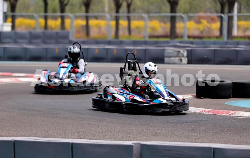 图片说明:2021年5月4日,游客在秦皇岛首钢赛车谷体验卡丁车竞技。