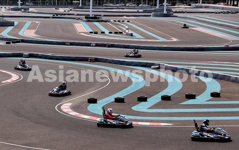 图片说明:2021年5月4日,游客在秦皇岛首钢赛车谷体验卡丁车竞技。