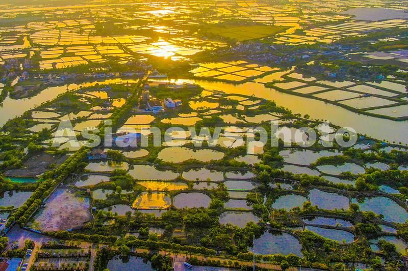 图片说明:2021年5月1日,浙江省湖州市南浔区和孚镇荻港村,千亩桑基鱼塘星罗棋布,高空俯瞰景象绚烂,一派诗情画意。