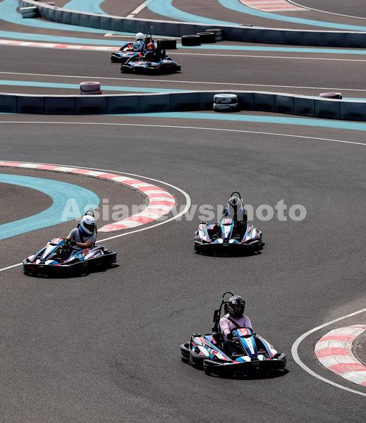 图片说明:2021年5月4日,游客在秦皇岛首钢赛车谷体验卡丁车竞技。