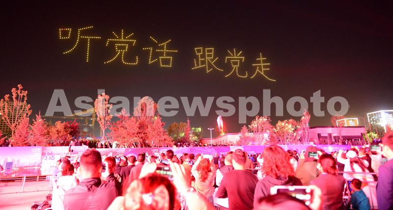 图片说明:2021年5月5日晚,1000架无人机组成“表演队”在兰州市黄河上空变幻出不同字样,迎接中国共产党成立100周年。