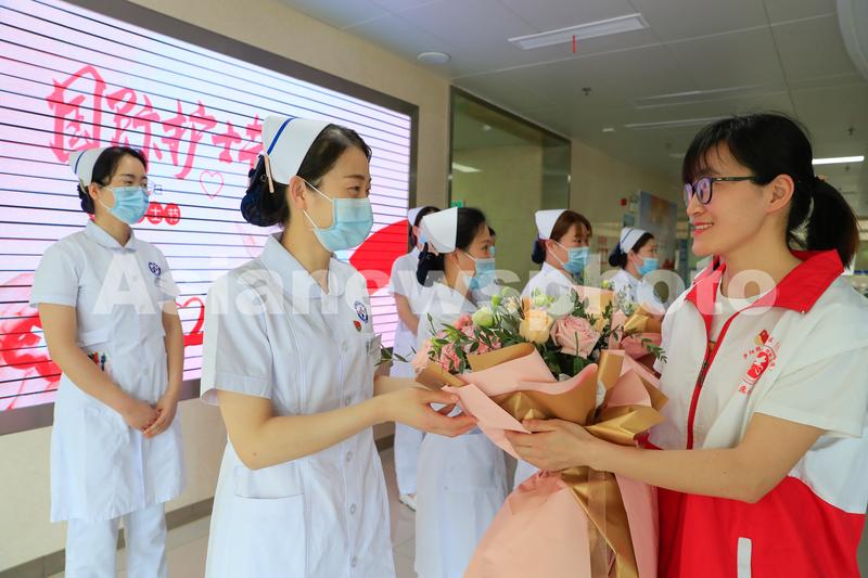 2021年5月10日,合肥庐阳经济开发区连水社区党员志愿者为辖区安徽东南外科医院部分一线护士送上鲜花和蛋糕,感谢他们日常为辖区居民提供的医疗救助和帮扶。