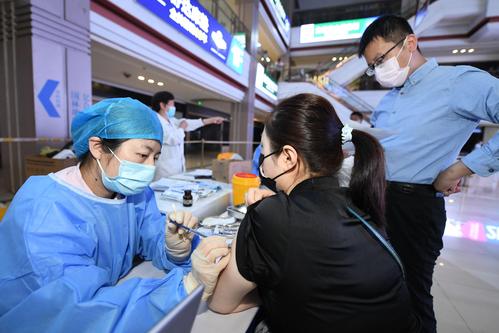 2021年5月11日上午8点,安徽省合肥市瑶海区长淮街道信地红星美凯龙新冠疫苗临时接种点“开诊”了,此临时接种点设在商场,调动了市民接种疫苗的积极性,截至上午12点,已接种460人,接种工作持续到下午5点。