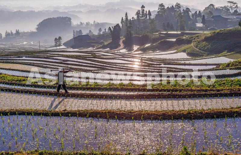 图片说明:2021年5月9日,重庆市南川区石溪镇盐井村村民迎着朝阳在田间劳作。