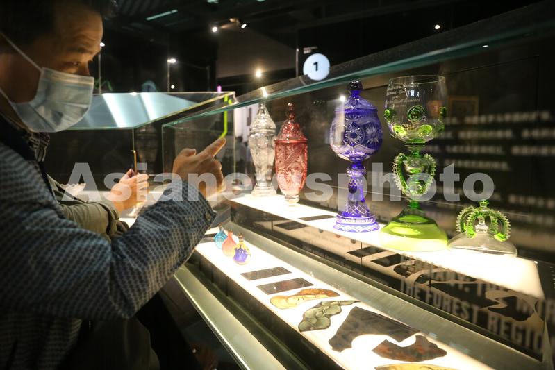 2021年5月18日,上海玻璃博物馆建馆十周年,游客欣赏馆藏工艺珍品。