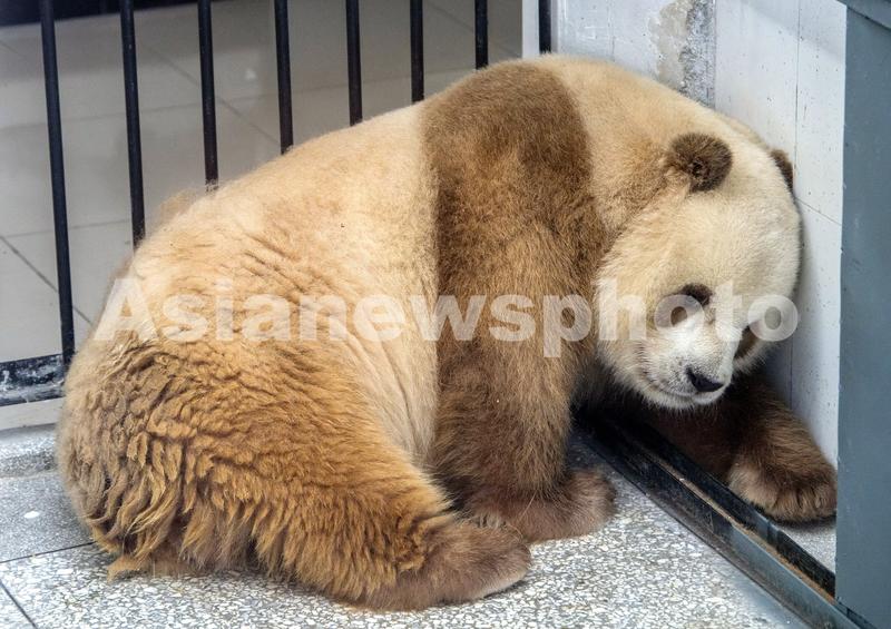 在秦岭四宝科学公园拍摄的世界唯一一只棕色人工饲养大熊猫“七仔”。