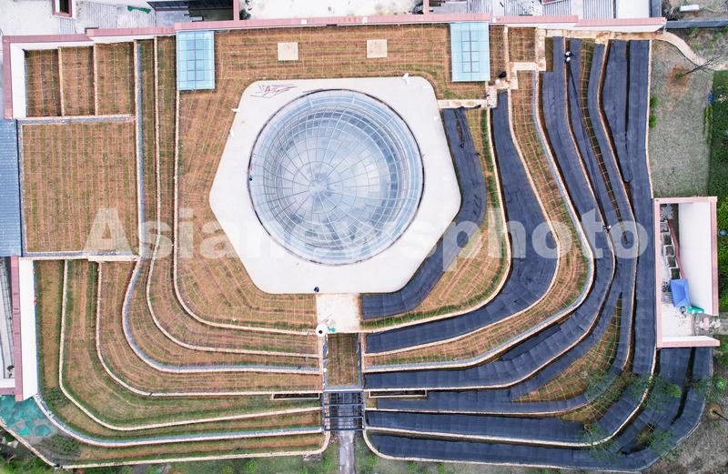 2021年5月20日,鸟瞰位于杭州市萧山区的世界旅游博物馆。近日,位于杭州市萧山区的的世界旅游总部暨世界旅游博物馆建筑工程已完成五方竣工验收,该馆的景观工程也已基本完成,开始进入博物馆展陈装修阶段。
