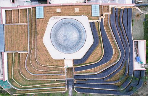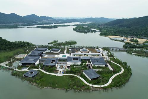 2021年5月20日,鸟瞰位于杭州市萧山区的世界旅游博物馆。近日,位于杭州市萧山区的的世界旅游总部暨世界旅游博物馆建筑工程已完成五方竣工验收,该馆的景观工程也已基本完成,开始进入博物馆展陈装修阶段。