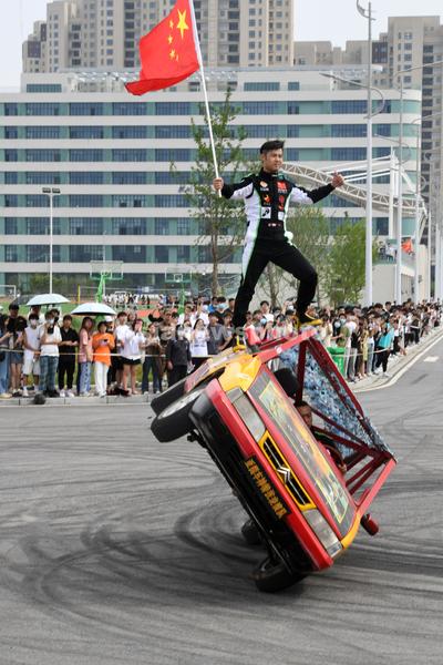 2021年5月27日,湖北武汉,长江职业学院2021年职教活动周上的汽车特技表演。