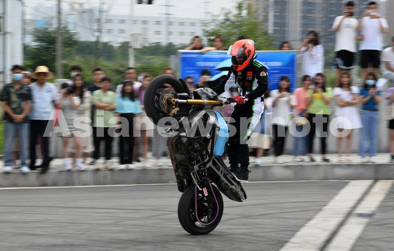 2021年5月27日,湖北武汉,长江职业学院2021年职教活动周上的汽车特技表演。
