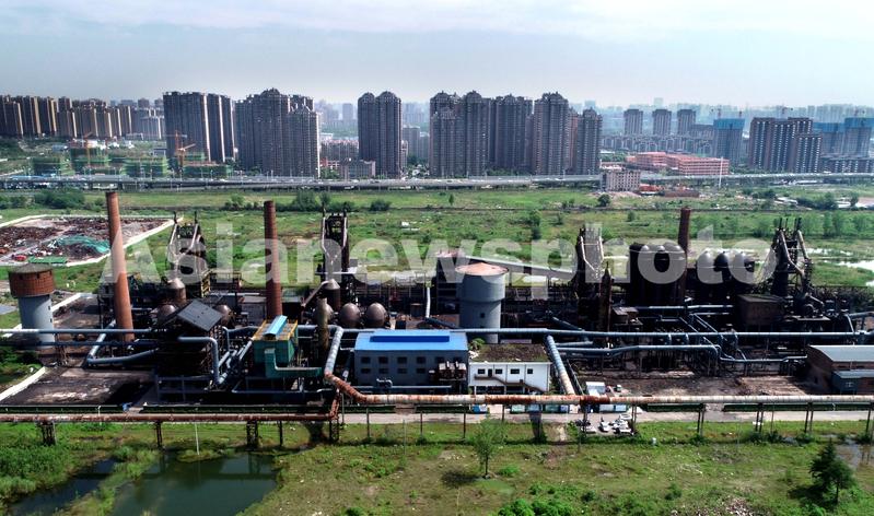 图片说明:2021年5月27日,合肥东部新中心的马(合)钢高炉区。(无人机照片)