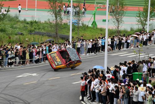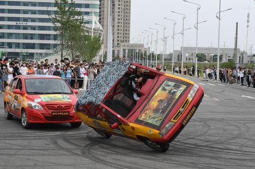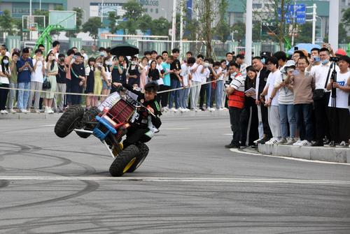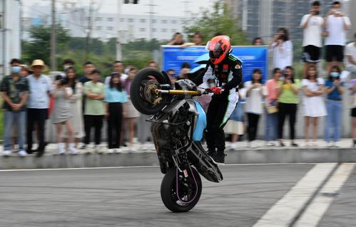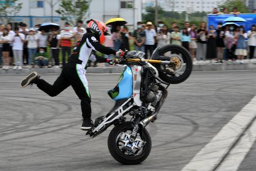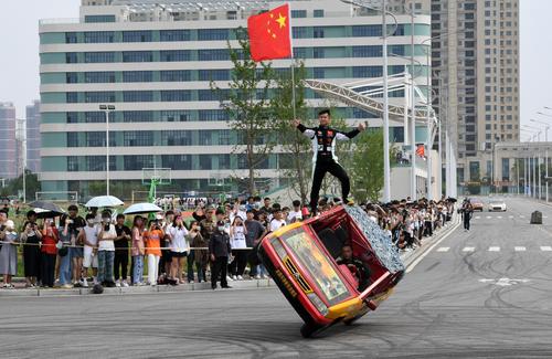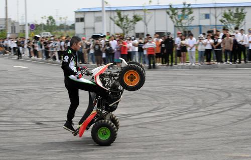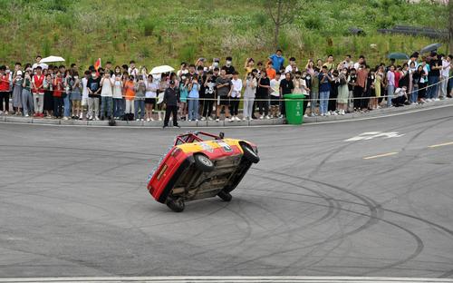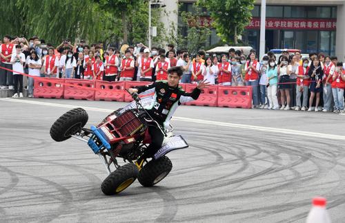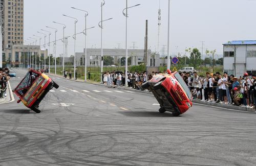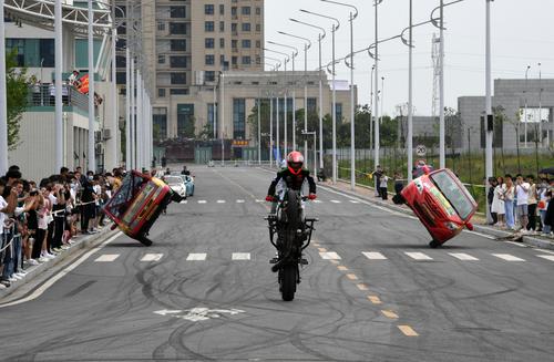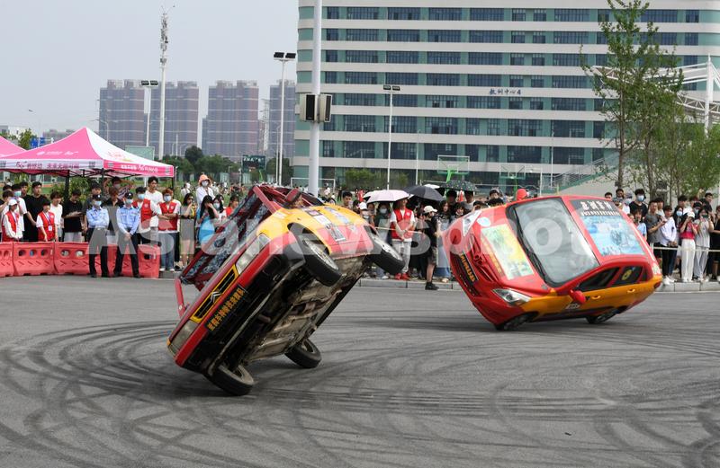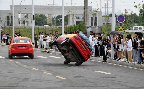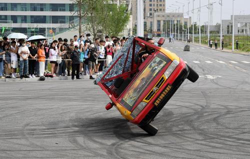 2021年5月27日,湖北武汉,长江职业学院2021年职教活动周上的汽车特技表演。
