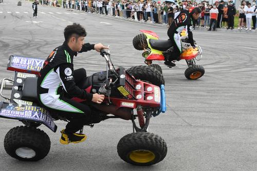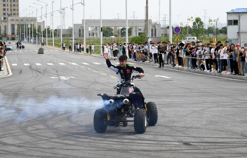 2021年5月27日,湖北武汉,长江职业学院举行2021年职教活动周,汽车特技活动受到关注。好莱坞汽车特技演员曾凡仁及其团队受学校邀请,表演了汽车漂移、180度转向、两台车同步8字漂移、侧两轮行驶……汽车特技表演让观众尖叫声不断。