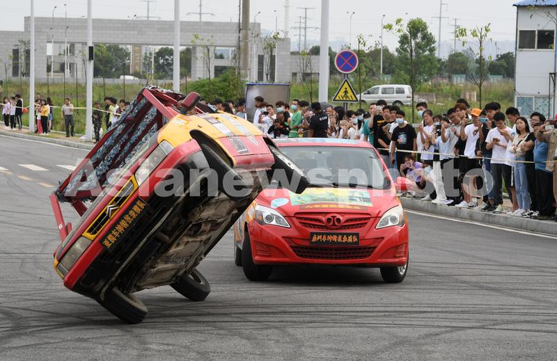 2021年5月27日,湖北武汉,长江职业学院2021年职教活动周上的汽车特技表演。